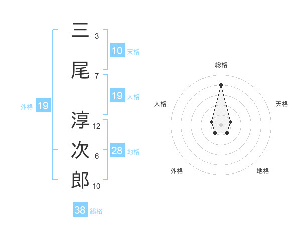 三尾 淳次郎さんを姓名の画数から五運を鑑定