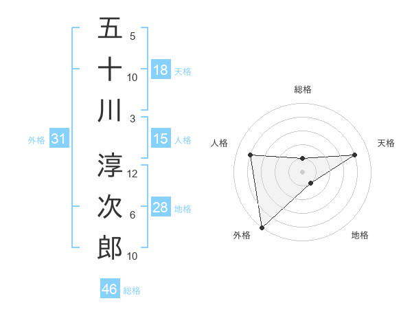 五十川 淳次郎さんの人格は15画の4点!