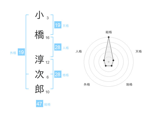小橋 淳次郎さんを姓名の画数から五運を鑑定