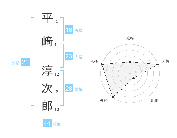 平﨑 淳次郎さんの地格は28画の1点!