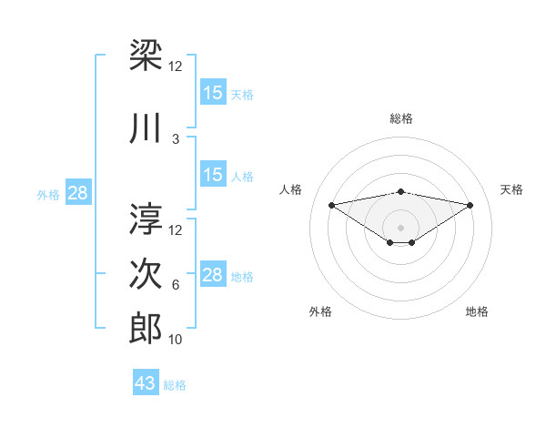 梁川 淳次郎さんの外格は28画の1点!