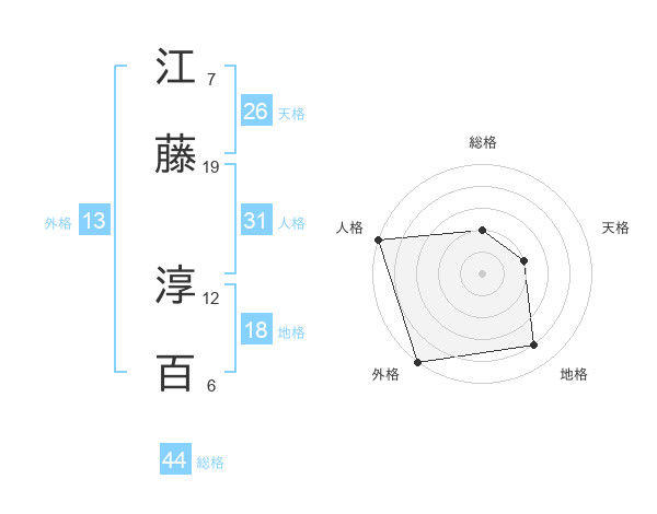 江藤 淳百さんの総格は44画の2点!