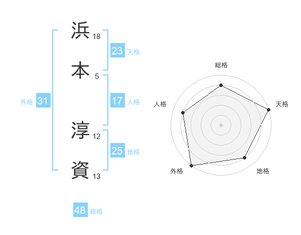 浜本 淳資さんを姓名の画数から五運を鑑定
