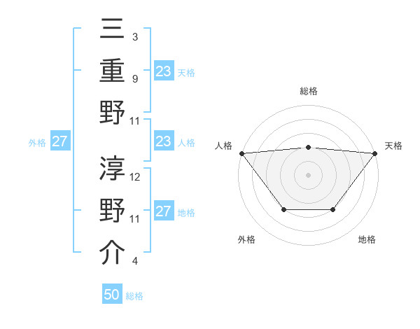 三重野 淳野介さんを姓名の画数から五運を鑑定