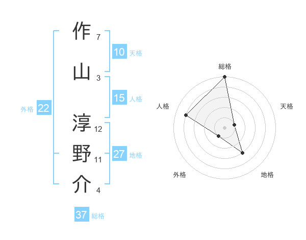 作山 淳野介さんの総格は37画の5点!