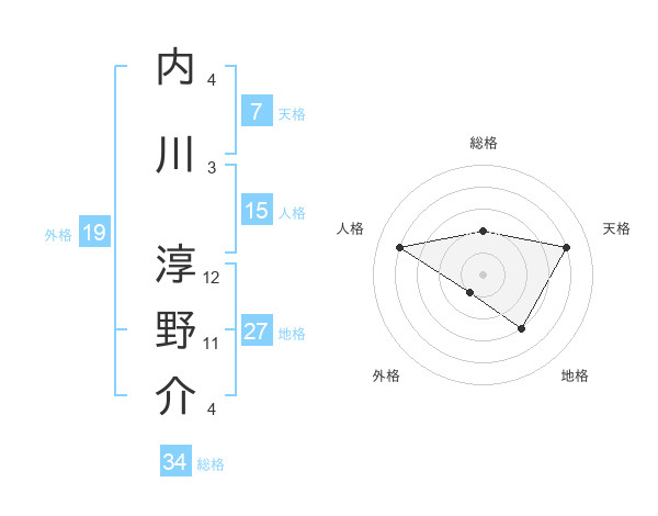 内川 淳野介さんを姓名の画数から五運を鑑定
