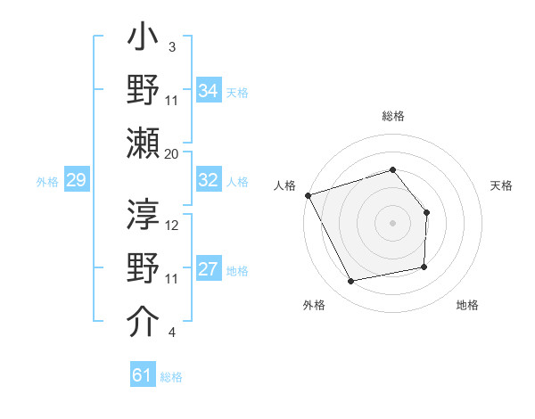 小野瀬 淳野介さんを姓名の画数から五運を鑑定