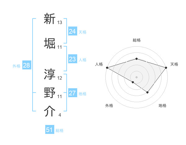 新堀 淳野介さんを姓名の画数から五運を鑑定