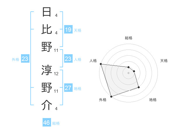 日比野 淳野介さんを姓名の画数から五運を鑑定