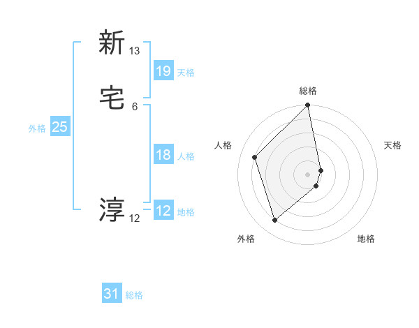 新宅 淳さんの総格は31画の5点!