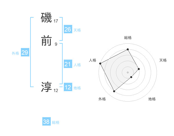 磯前 淳さんを姓名の画数から五運を鑑定