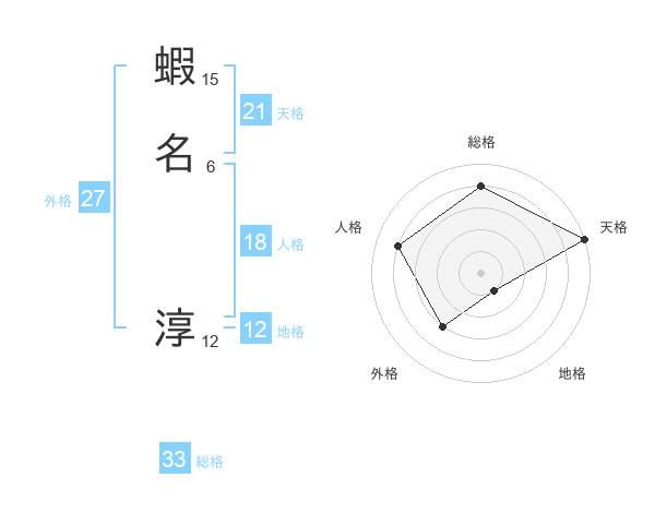 蝦名 淳さんの天格は21画の5点!