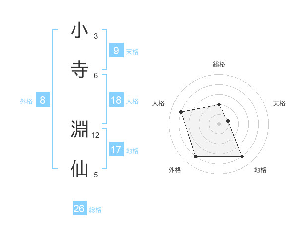 小寺 淵仙さんを姓名の画数から五運を鑑定