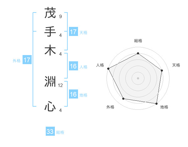 茂手木 淵心さんを姓名の画数から五運を鑑定