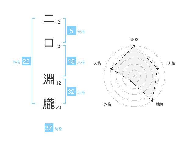二口 淵朧さんを姓名の画数から五運を鑑定
