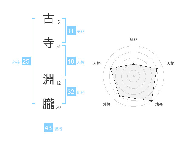 古寺 淵朧さんを姓名の画数から五運を鑑定