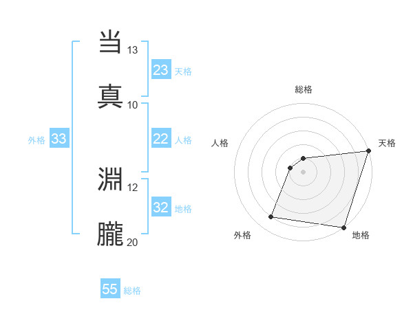 当真 淵朧さんの総格は55画の1点!