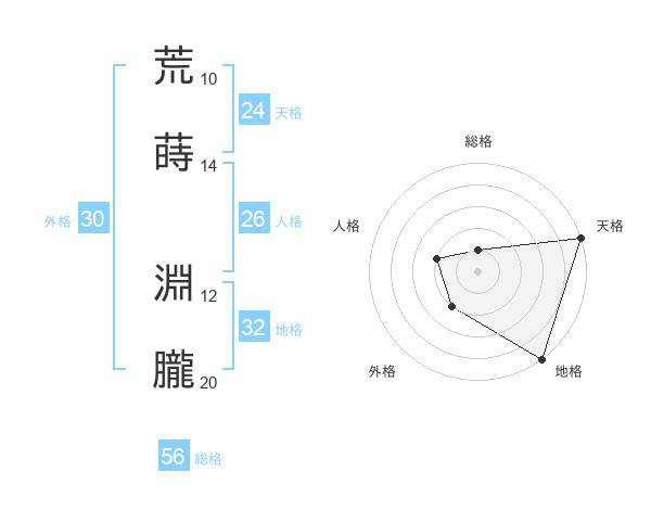 荒蒔 淵朧さんの総格は56画の1点!