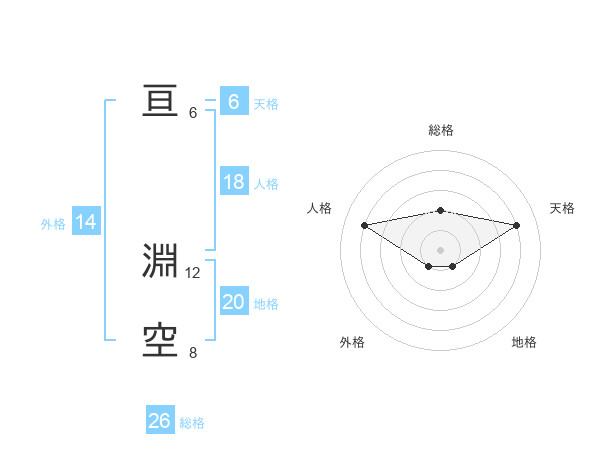 亘 淵空さんの地格は20画の1点!