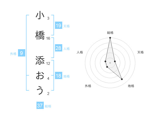 小橋 添おうさんを姓名の画数から五運を鑑定
