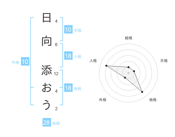 日向 添おうさんの総格は28画の1点!