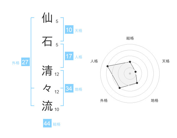 仙石 清々流さんを姓名の画数から五運を鑑定