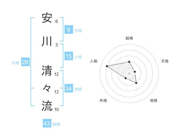 安川 清々流さんの総格は43画の2点!
