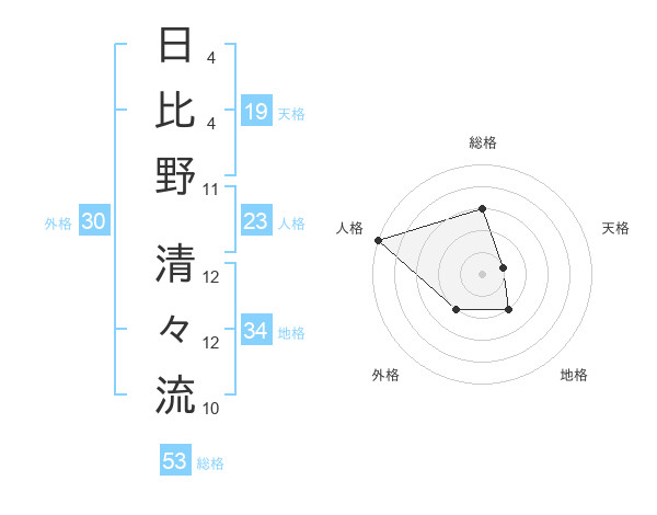 日比野 清々流さんを姓名の画数から五運を鑑定