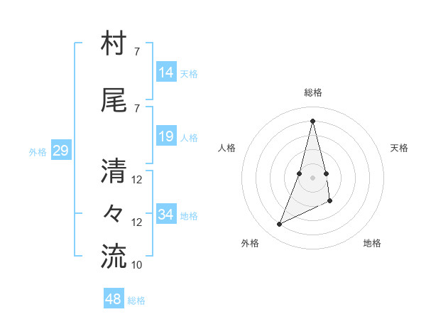 村尾 清々流さんの総格は48画の4点!