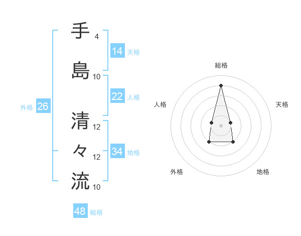 手島 清々流さんの総格は48画の4点!