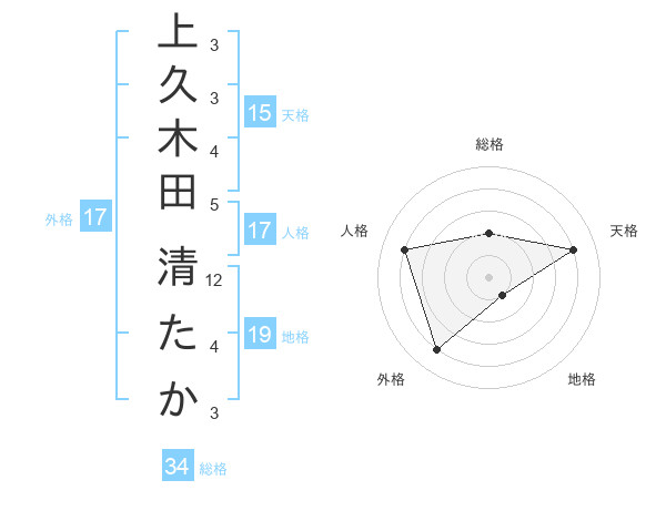 上久木田 清たかさんを姓名の画数から五運を鑑定
