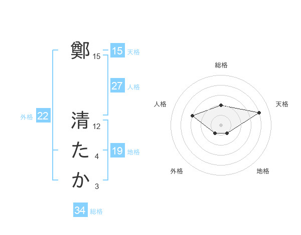 鄭 清たかさんを姓名の画数から五運を鑑定