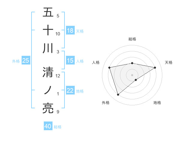 五十川 清ノ亮さんを姓名の画数から五運を鑑定