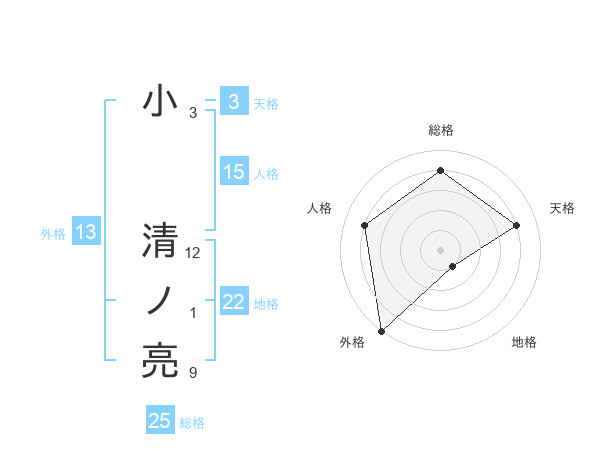 小 清ノ亮さんの外格は13画の5点!