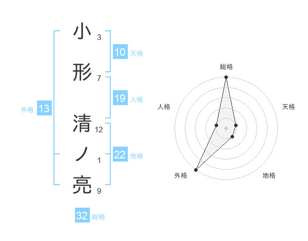 小形 清ノ亮さんを姓名の画数から五運を鑑定