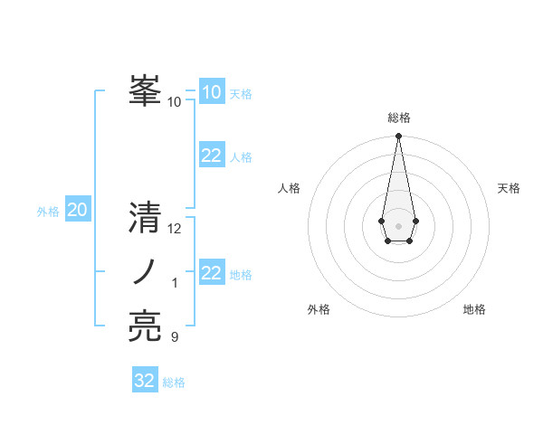 峯 清ノ亮さんを姓名の画数から五運を鑑定