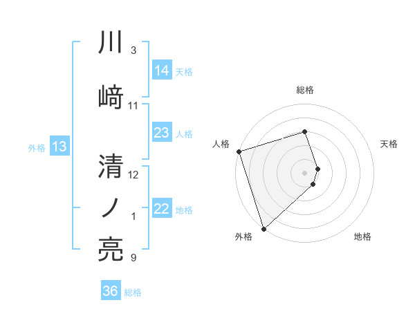 川﨑 清ノ亮さんを姓名の画数から五運を鑑定