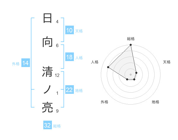 日向 清ノ亮さんを姓名の画数から五運を鑑定
