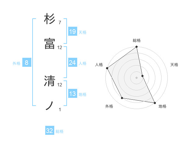 杉富 清ノさんの総格は32画の5点!