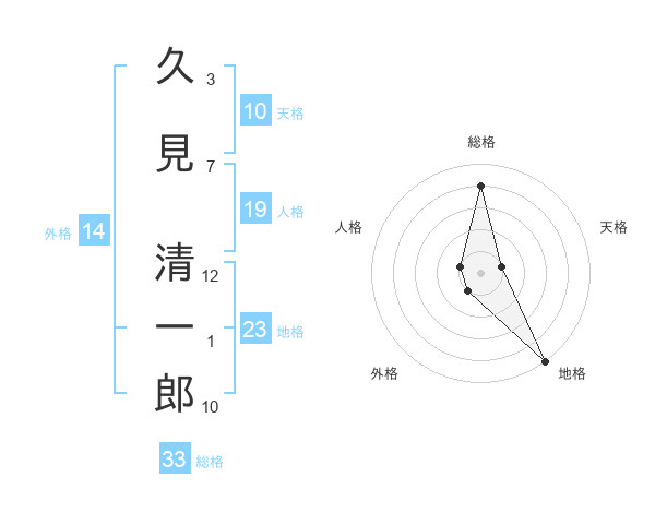 久見 清一郎さんの総格は33画の4点!
