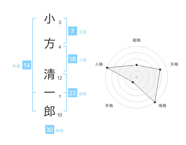 小方 清一郎さんを姓名の画数から五運を鑑定