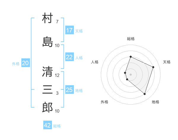 村島 清三郎さんを姓名の画数から五運を鑑定