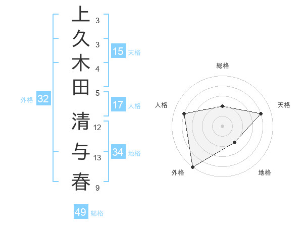 上久木田 清与春さんを姓名の画数から五運を鑑定