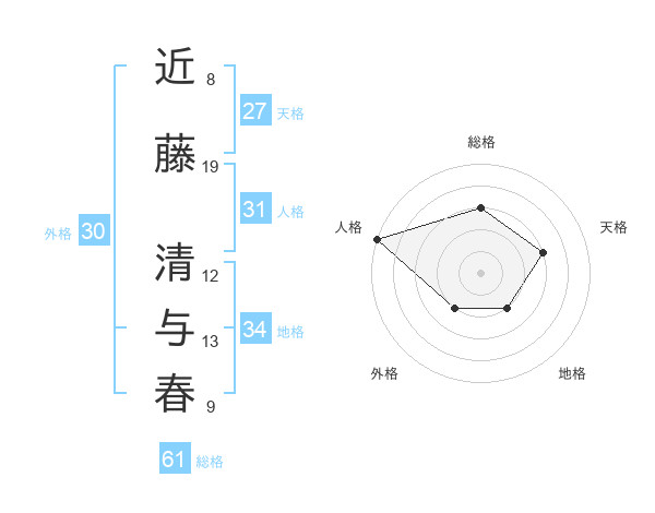 近藤 清与春さんを姓名の画数から五運を鑑定