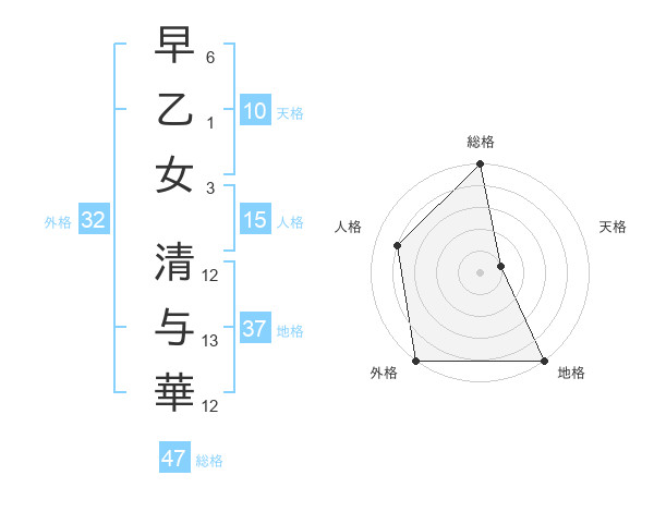 早乙女 清与華さんを姓名の画数から五運を鑑定