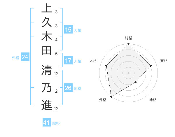 上久木田 清乃進さんを姓名の画数から五運を鑑定