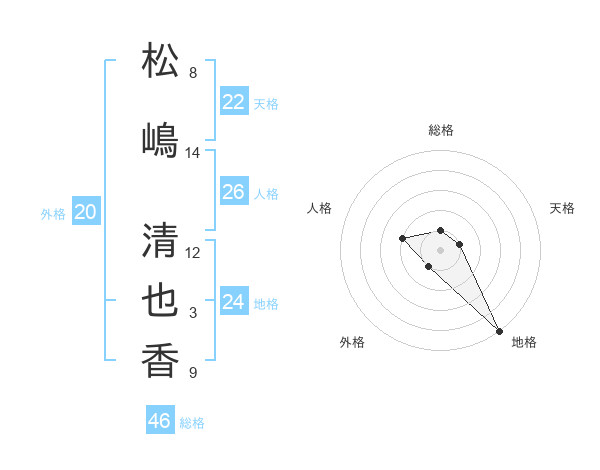 松嶋 清也香さんを姓名の画数から五運を鑑定