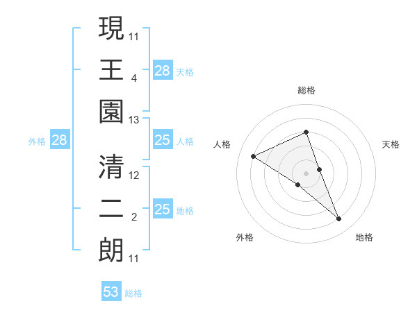 現王園 清二朗さんを姓名の画数から五運を鑑定