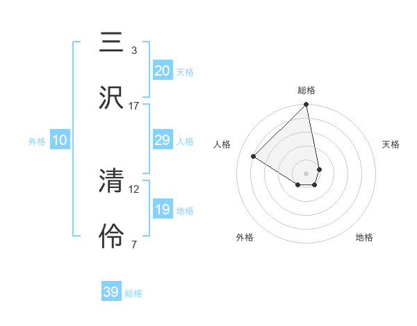 三沢 清伶さんを姓名の画数から五運を鑑定