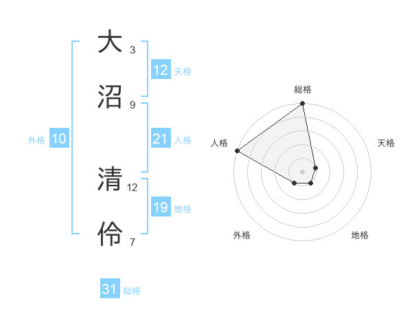 大沼 清伶さんの総格は31画の5点!